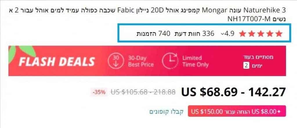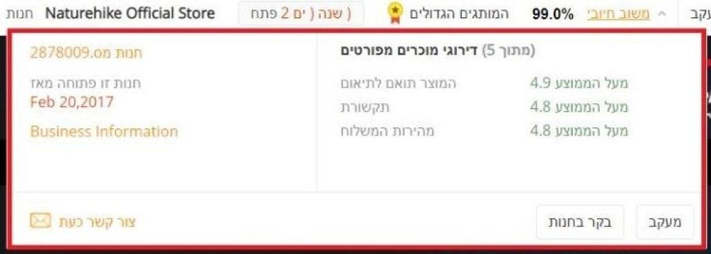 3) הכנסו לחנות של המוכר- בחנות תוכלו לראות דירוג כללי לאותו המוכר וחוות דעת. בנוסף, תוכלו להתרשם מהמוצרים הנוספים שהמוכר מציע ולצרפם לרכישה, כך תוכלו לנצל מסכום מסויים גם את הקופונים הייחודים של המוכר.