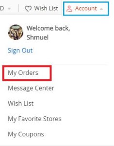 באתר אליקספרס שימו את הסמן של העכבר על שם המשתמש שלכם והקליקו על ההזמנות שלי My Orders (ראו תמונה)