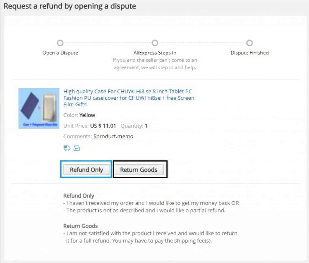 במקרה כזה ובמידה ולא מגיעים להסכמה עם המוכר, ניתן להסלים את הדיון במחלוקת (to escalate) ובשלב זה "תכנס לתמונה" הנהלת אלי אקספרס, תבחן את המקרה ותציע פשרה.