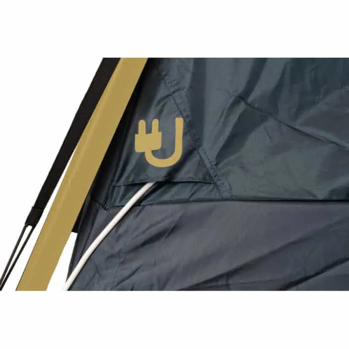 מתלה ייעודי לפנס ולולאות השחלה לחוט חשמל עד לכיס בדופן האוהל להצבת ספק כוח