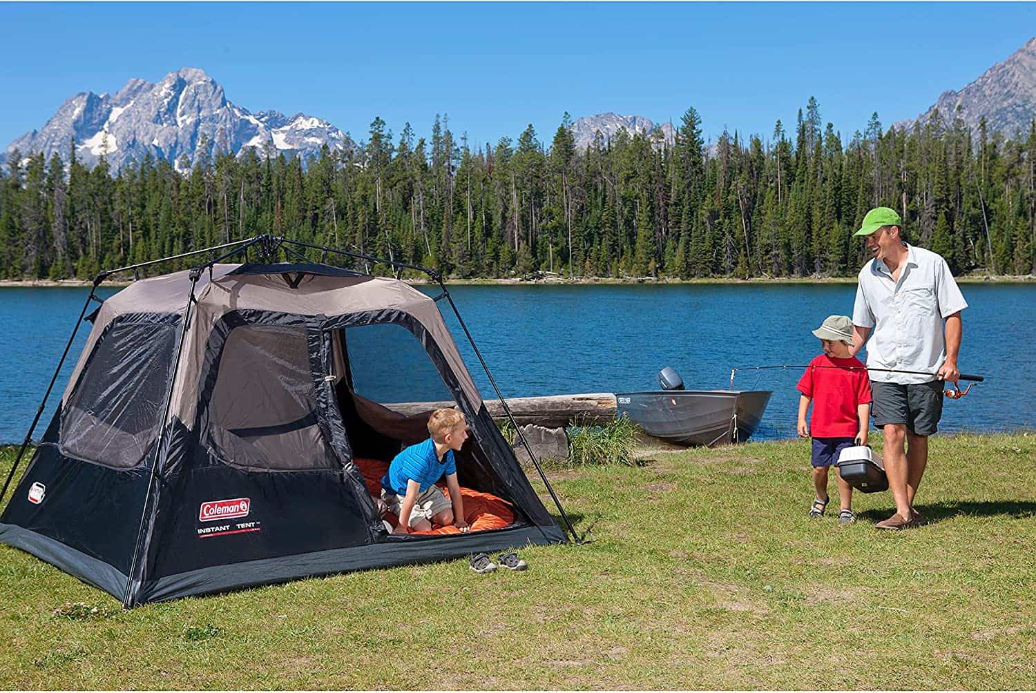 אוהל בין רגע ל-4 אנשים Coleman, מנגנון הקמה וקיפול מהירים תוך 60 שניות – פטנט רשום של Coleman.