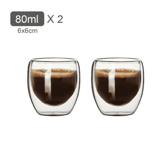 9 כוסות זכוכית דופן כפולה 80 מ"ל לתה וקפה