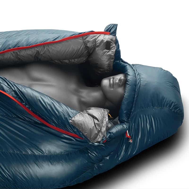 - המעטפת החיצונית עשויה מבד 7D Kolon Super Light DWR Nylon, הבד תפור בצפיפות גבוהה כך שמונע כניסה של רוח לשק השינה.