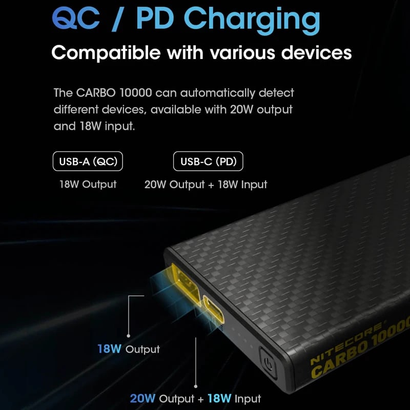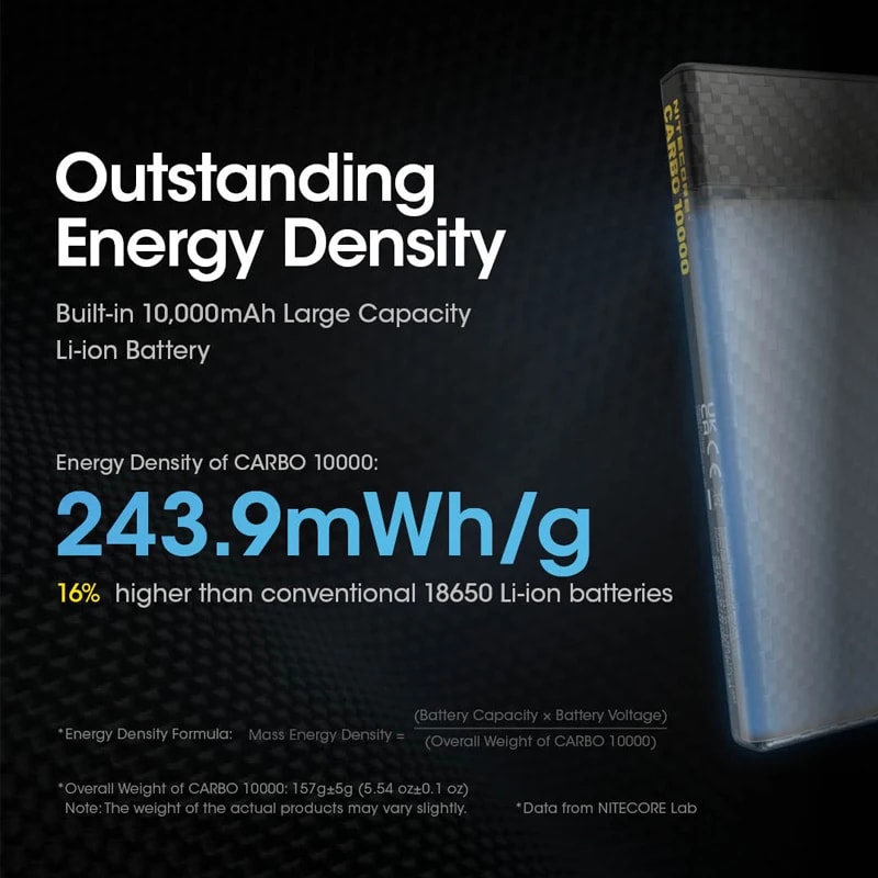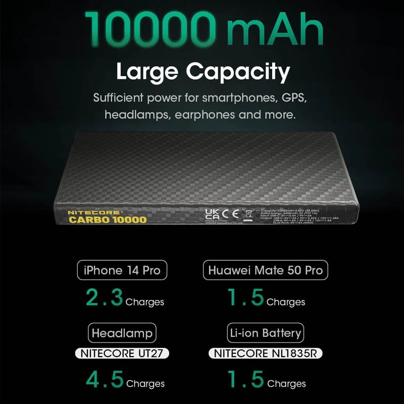 Specification: מטען נייד 10000 הקל בעולם – NITECORE CARBO 10000