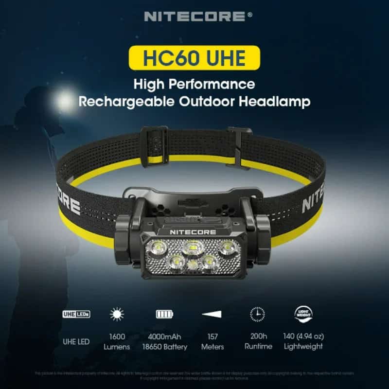 Specification: פנס ראש NITECORE HC60 UHE – עוצמה של 1,600 לומנס עם טכנולוגיית LED מתקדמת