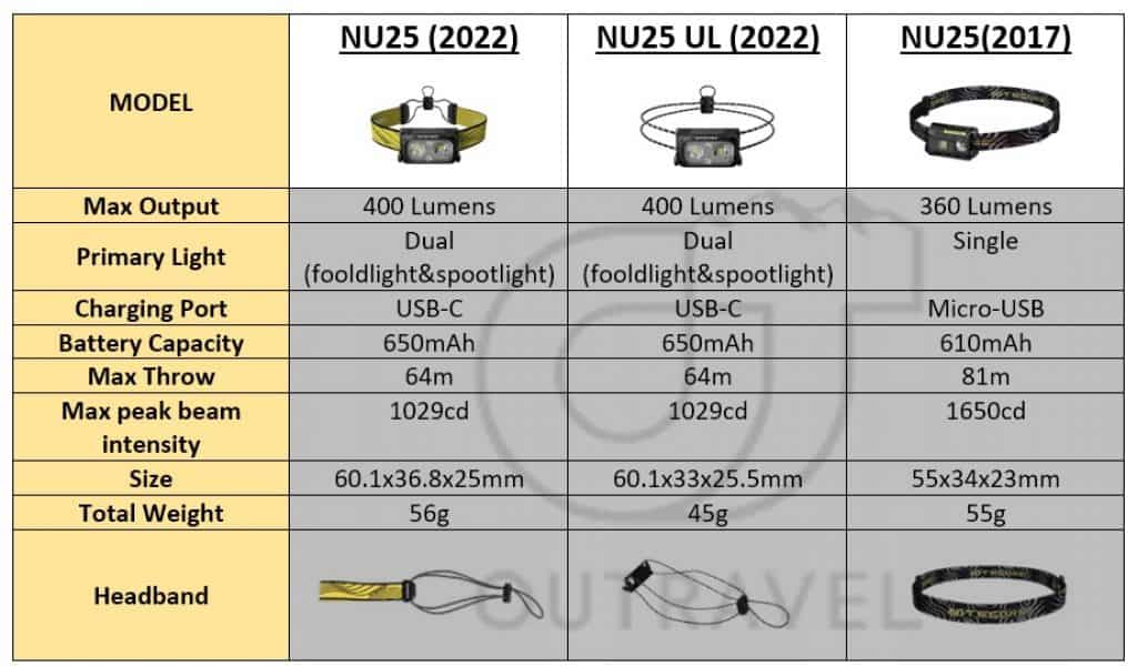 Specification: פנס ראש הקל בעולם – Nitecore NU25 UL