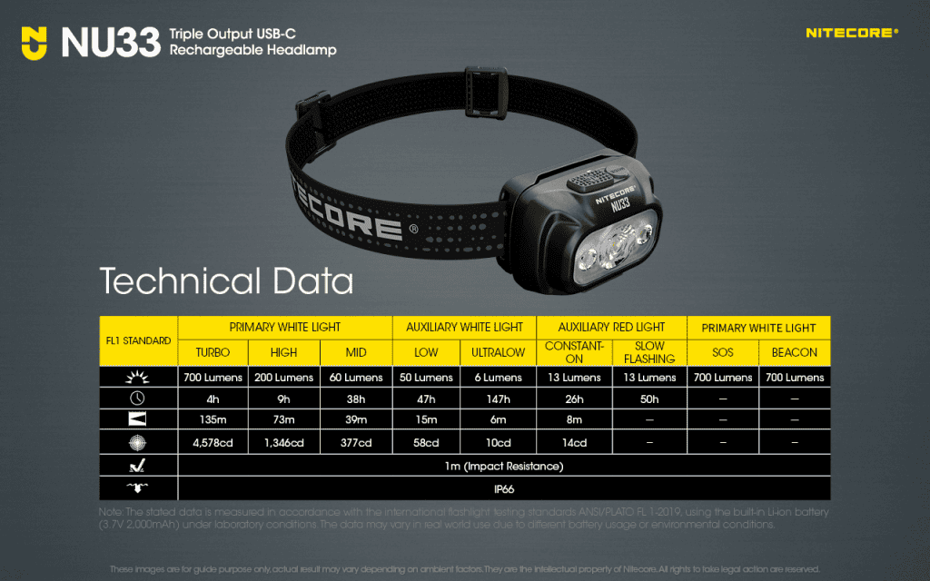 Specification: פנס ראש NU33 – פנס חזק ואיכותי לטיולים