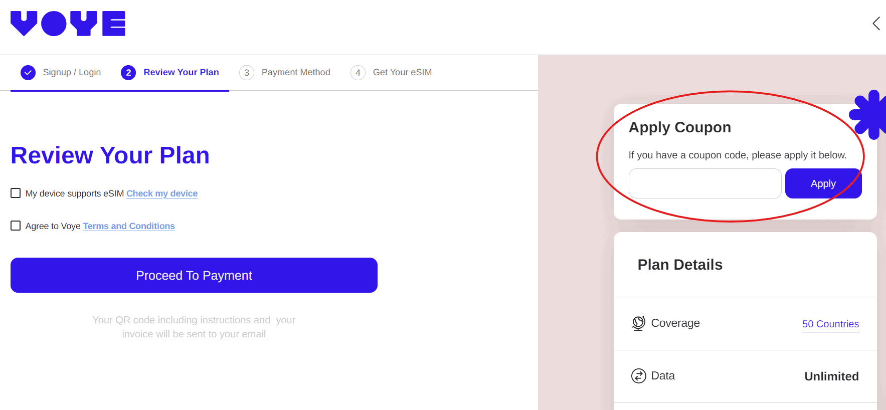 קופון 20% הנחה ל-eSIM Voye הזול והטוב בעולם – Voye eSIM coupon