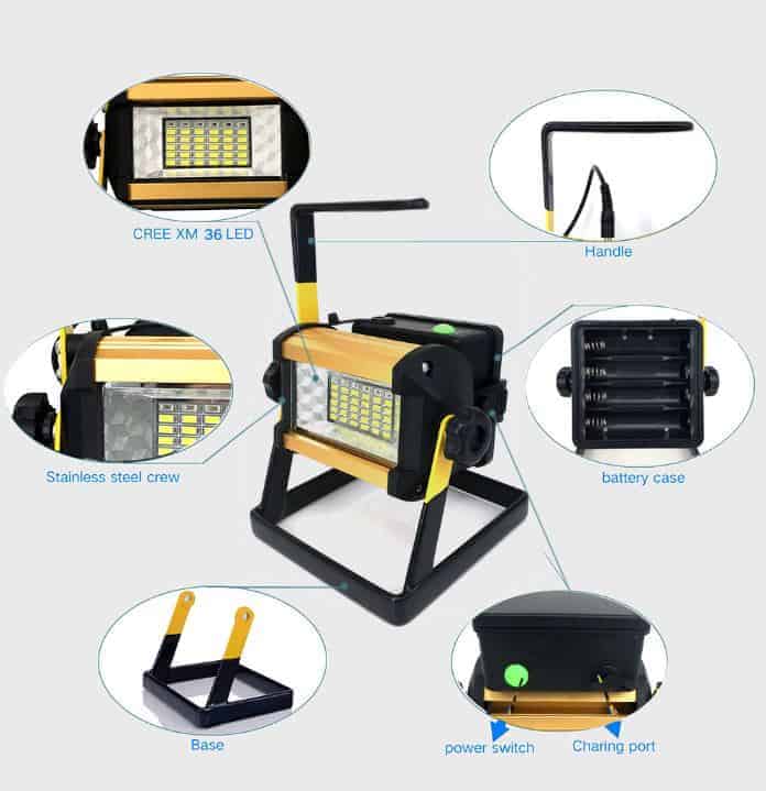 תאורת לד עם רגלי מעמד וידית נשיאה, הפנס יכול לנוע במגוון זוויות כך שתוכלו להתאימו